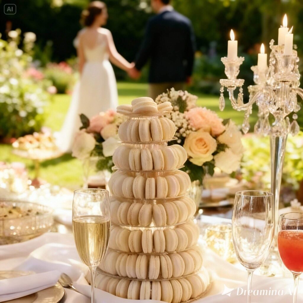 Encomendamos uma torre com 140 macarons para o nosso casamento. Além de linda, encantou todos os convidados — não sobrou nenhum!